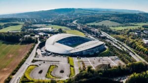 Fans can also cycle to the stadium, with bicycle parking available near the entrances. The stadium perimeter is designed with access in mind, with flat tarmac areas on the east side.