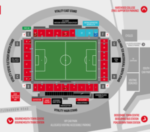 - By Car: Take the A338 towards Bournemouth and follow the signs to the stadium. There’s ample parking available for both home and away supporters.